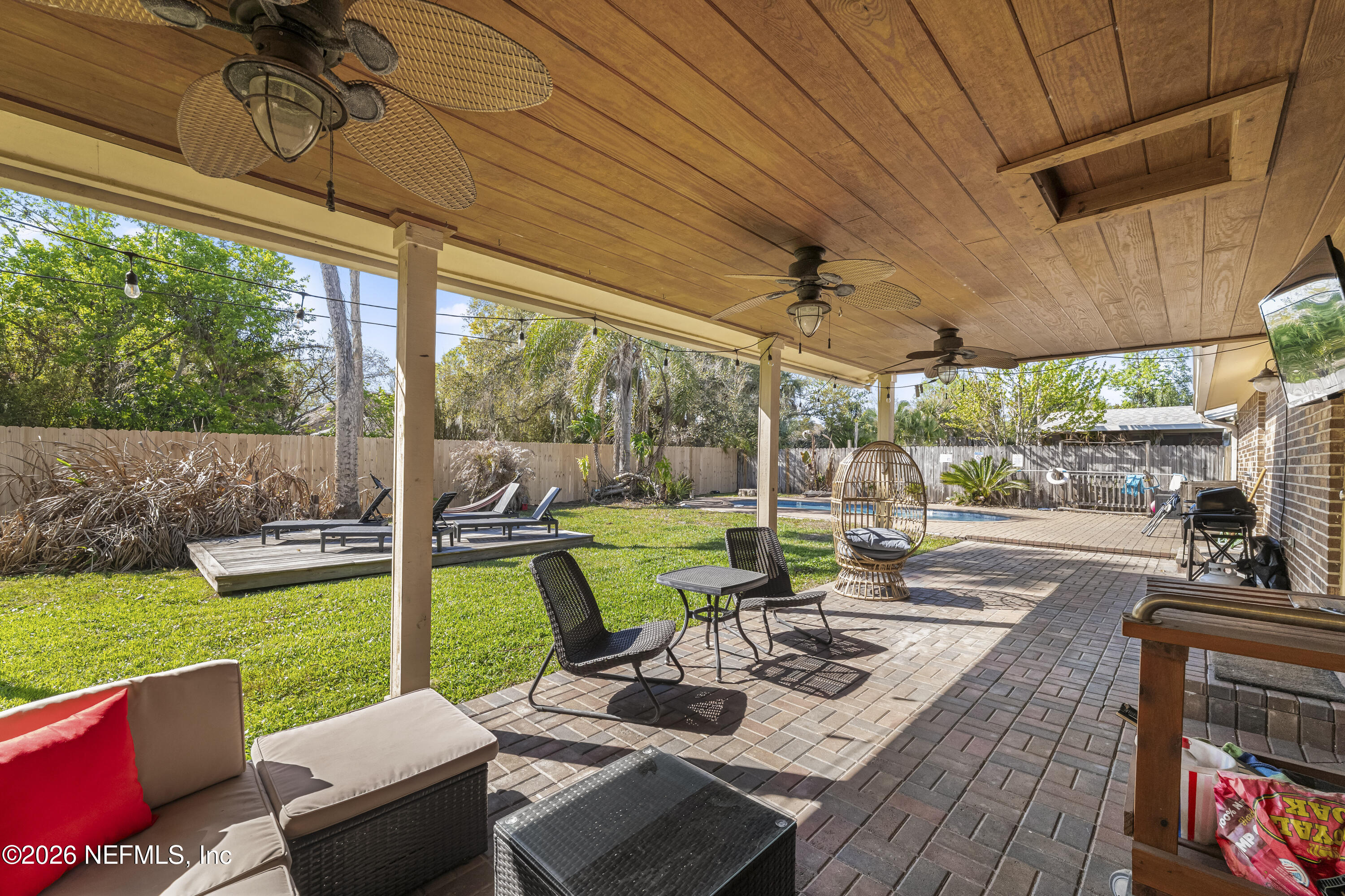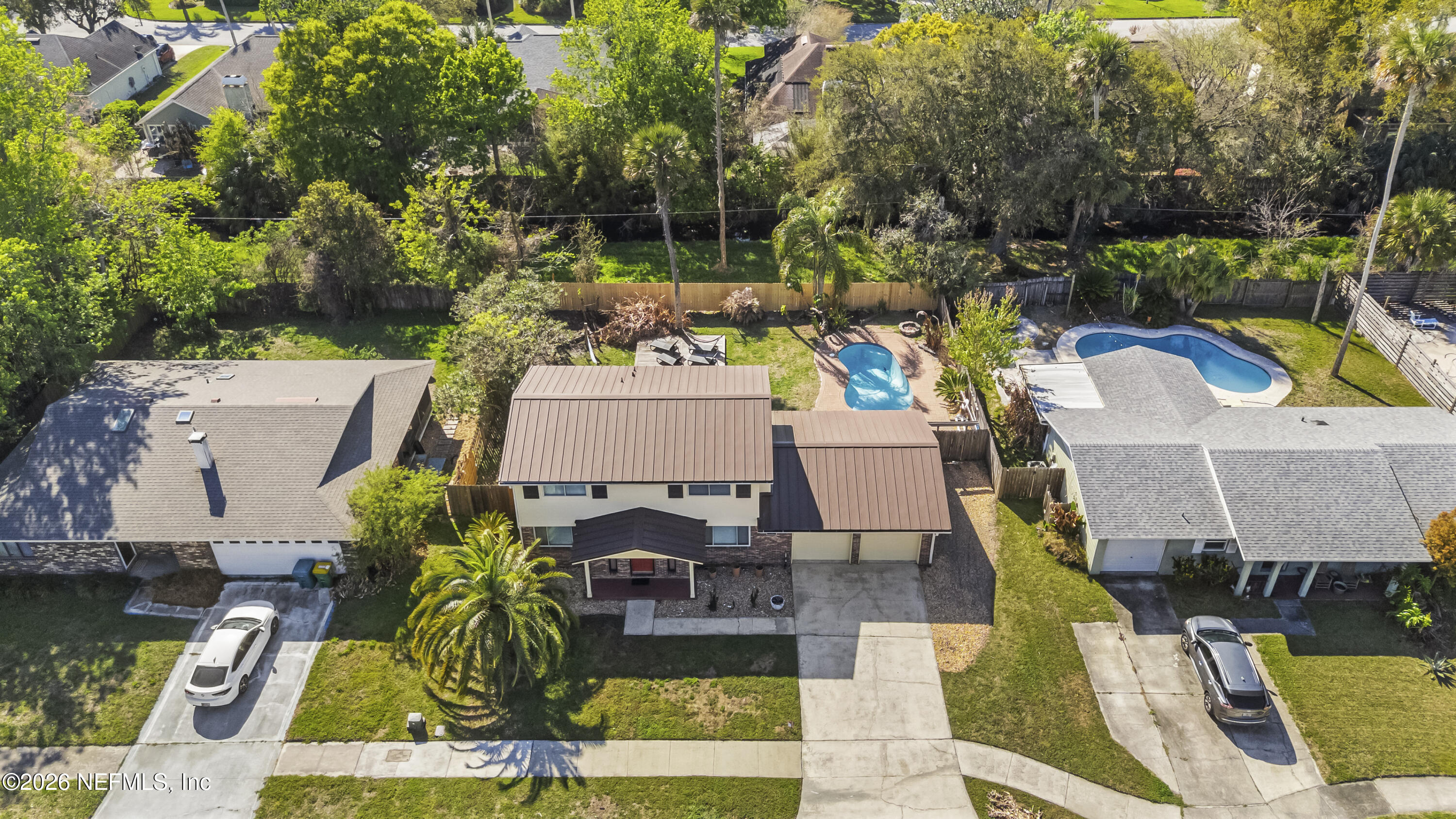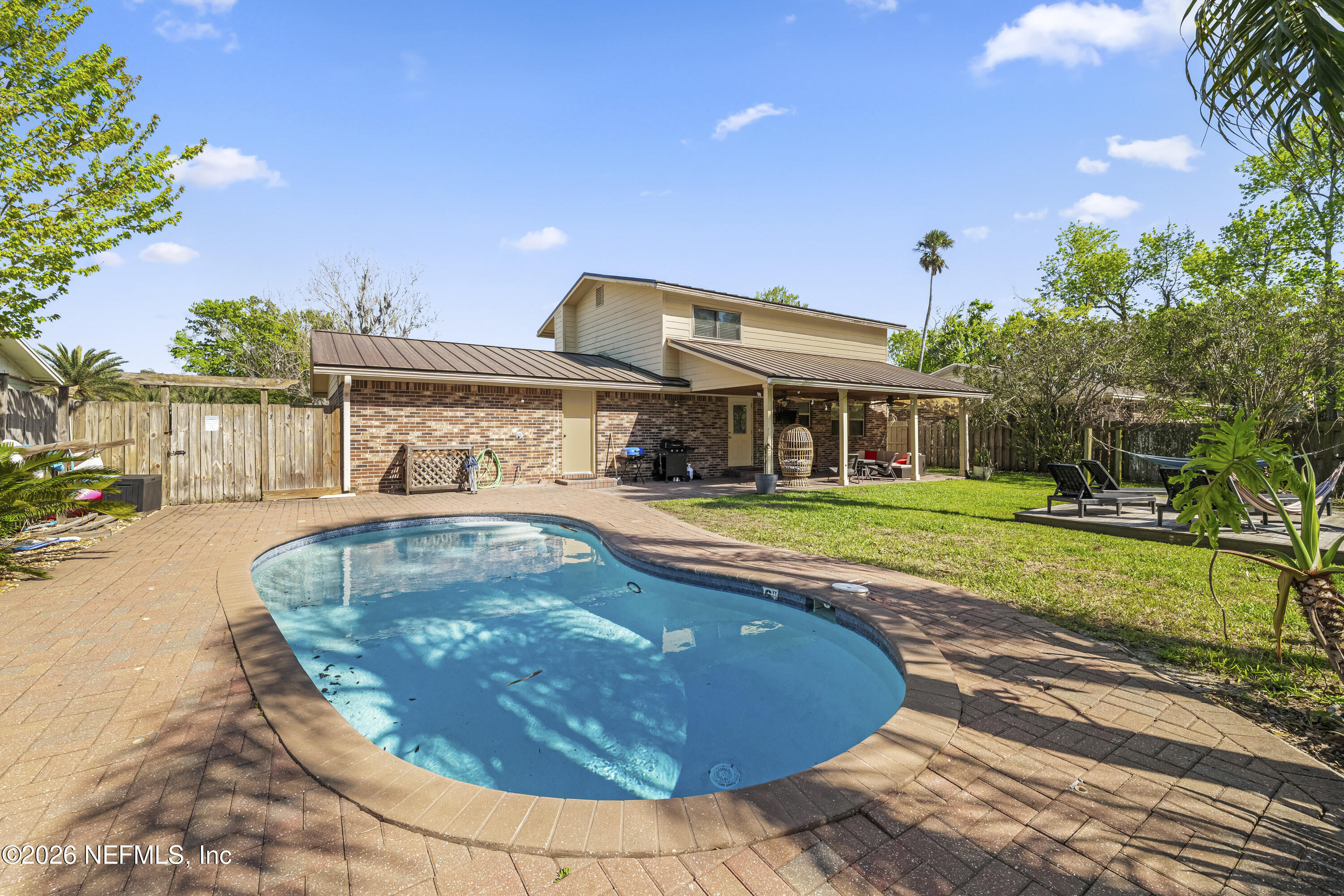 Welcome to 2702 Liberty Lane, a beautifully maintained Jacksonville Beach POOL home offering the perfect blend of coastal living and comfort. A private backyard oasis featuring a sparkling pool, covered patio, and lush green space creates the perfect setting for relaxing, entertaining, and enjoying the Jax Beach lifestyle. Inside, the home offers a light, bright, and open layout with multiple living spaces including a family/dining combination and separate living room. The spacious kitchen features stainless steel appliances, a large pantry, and a great open flow. Additional interior highlights include tile and wood flooring, walk-in closets, updated bathrooms, and indoor laundry. 50 year metal roof, new HVAC in 2023, new pool pump in 2023.