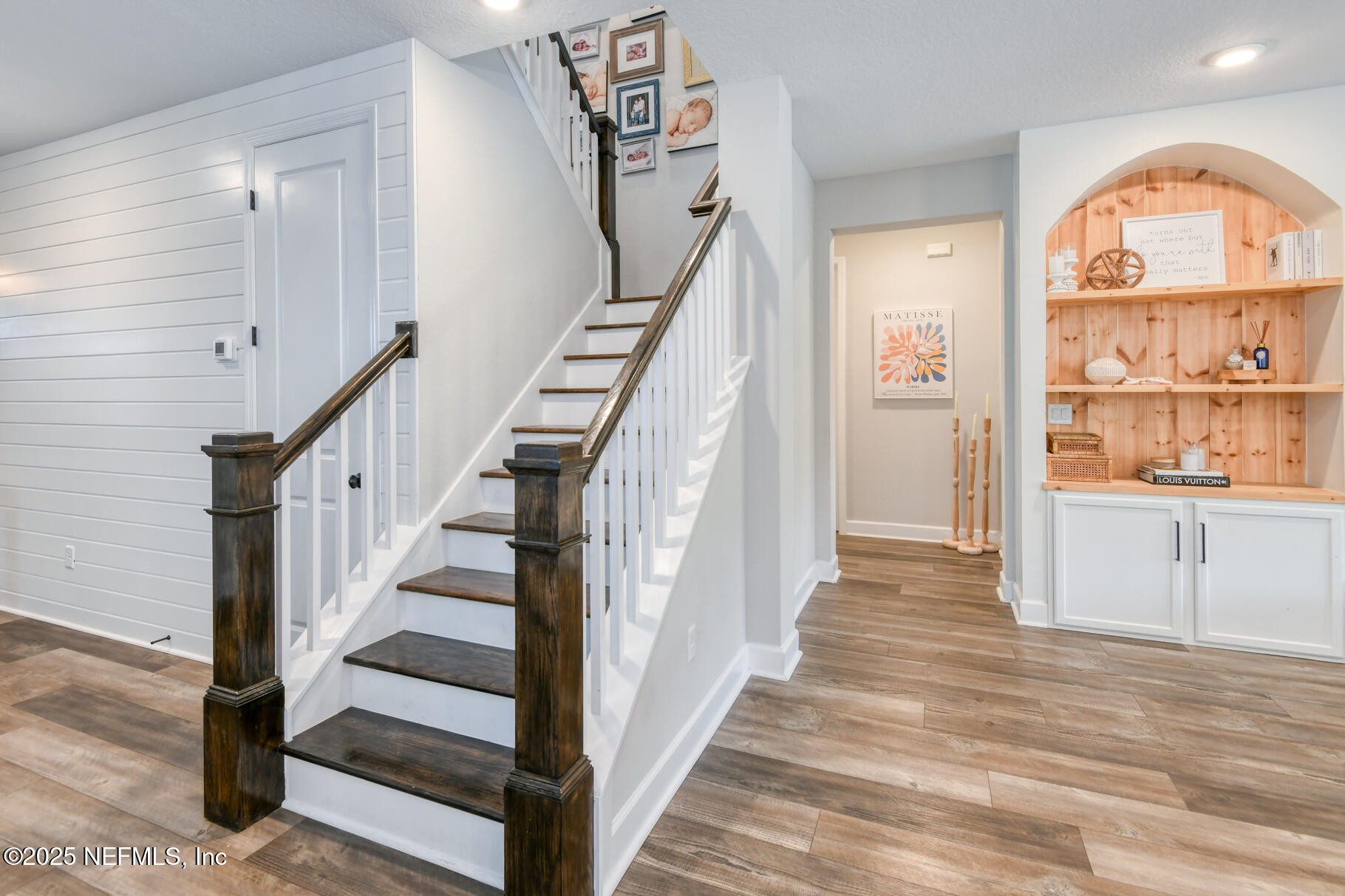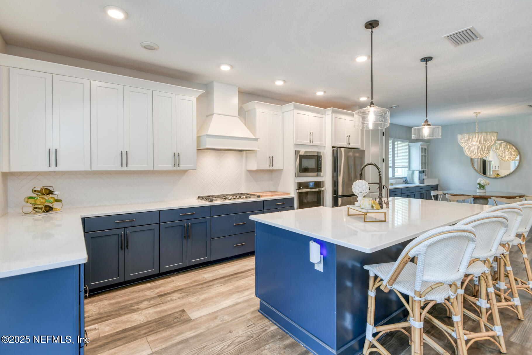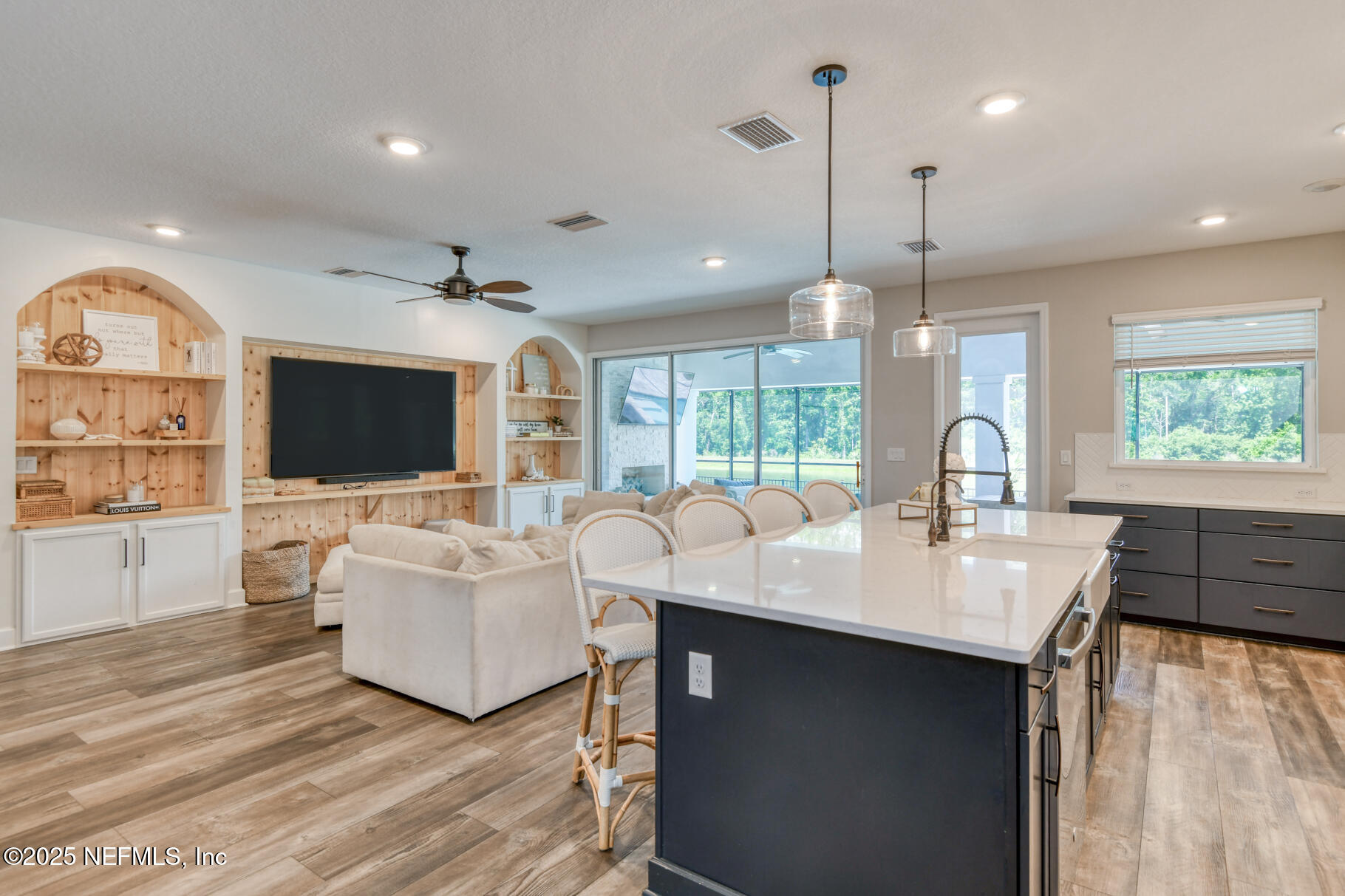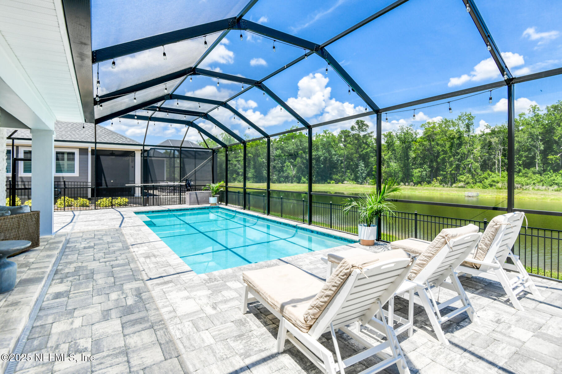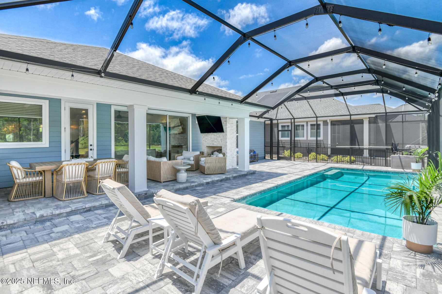 Exceptional 4BR/3.5BA pool home with screened in enclosure, plus office in the highly desirable Shearwater community. Features include 10' ceilings, recessed lighting, and wide plank LVP flooring throughout the main level. Family room includes pocket sliders opening to an enclosed paver lanai, with a built-in gas fireplace, outdoor kitchen, heated/cooled swimming pool and plenty of space to entertain. The fully fenced backyard overlooking lake and preserve offers some privacy. The primary suite includes a sitting area, walk-in closet with upgraded double shower heads. This home is beautifully designed by the home owner and an interior designer. Enjoy the many custom built-ins in the family room, lanai, primary closet , and mudroom. Upstairs, there is a large bonus room for entertaining and privacy for the kids. Seller may offer concessions towards closing costs.